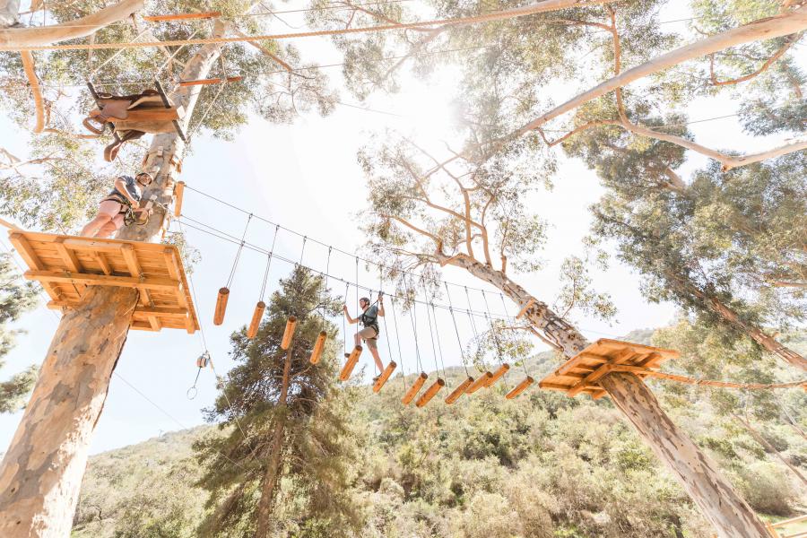 Want more of a physical challenge? Try the Catalina Aerial Adventure. This tour is a unique and challenging outdoor experience. It consists of climbing, swinging and crawling through a series of challenging obstacles suspended in a grove of towering eucalyptus.